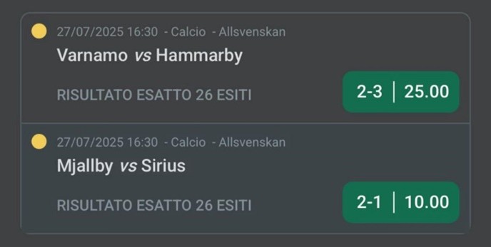 Focus sul campionato svedese, dove ha previsto con precisione chirurgica il 2-3 di Varnamo-Hammarby (quota 25) e, in parallelo, il 2-1 di Mjallby-Sirius (quota 10). Entrambe le scommesse sono andate a segno, regalando un’altra combinata da brividi e confermando Mister X come uno dei tipster più in forma del momento.