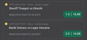 Tutto è cominciato con una singola sul secondo turno di qualificazione di Europa League: Banik Ostrava-Legia Varsavia 2-2, risultato indovinato al millimetro. Ma il vero colpo di teatro è arrivato con la seconda parte della combinata: Sheriff Tiraspol-Utrecht 1-3, un pronostico visionario che si è incredibilmente avverato. Una scommessa che sembrava impossibile, trasformata in realtà da Mister X, capace di trasformare l’azzardo in arte.
